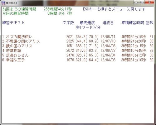 読書と散歩に時間を取られ、ややタイピング速度が落ちた。 とくにタイプウェルは進捗無し。