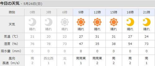 現在Yahoo天気予報では27度湿度76%なので別に耐えられるけれど、クーラー(エアコン)をつけた。クーラー29度設定で、室温29.4度。クーラーをつけないと室温は30度オーバーだろう。
