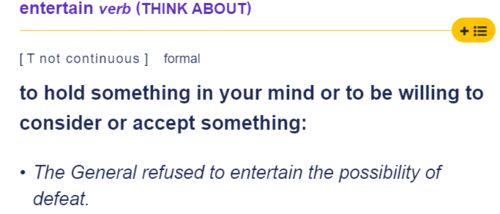 オンライ英会話の記事に出てきたflikerを辞書で調べていたらentertainの意外な意味に出会った。 英語「flicker」の意味・使い方・読み方 | Weblio英和辞書 2(希望などの)かすかな光. entertain a flicker of hope かすかな希望を抱く. entertainは”~を楽し…